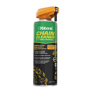 Diton Chain Cleaner adalah cairan khusus pembersih rantai yang diformulasikan dengan kombinasi pelarut terbaik yang sangat efektif membersihkan debu, oli, gemuk, aspal, pelumas sebelumnya dan kotoran yang menempel pada rantai.